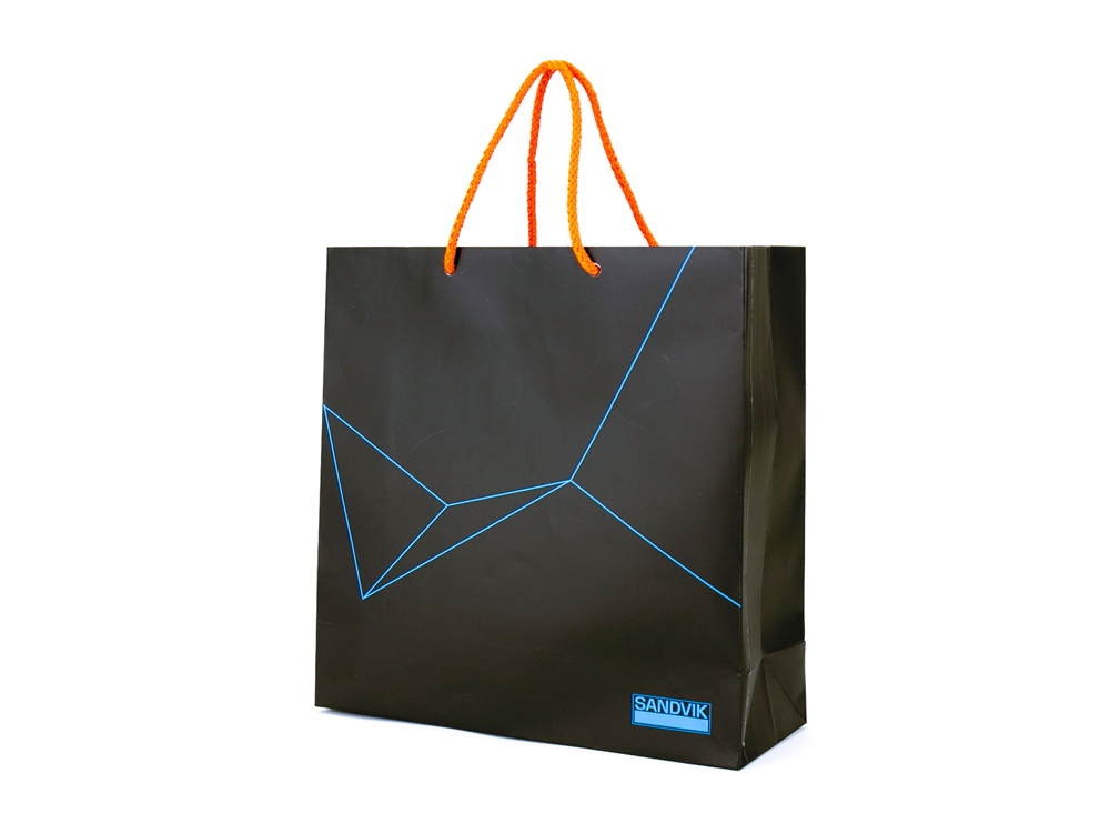 Бумажный пакет с веревочными ручками и укрепленным дном.